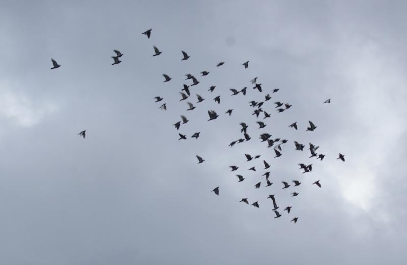 下りて来たら餌を上げよう?と思って時より窓越しから覗いていましたが「雨」の中、鳩くんたちは飛んで居ました。2時経過した頃には「40羽」位の鳩くんがまだ「雨」で視界不良の中飛んで居て、何時下りて来るのか心配になって来ました。