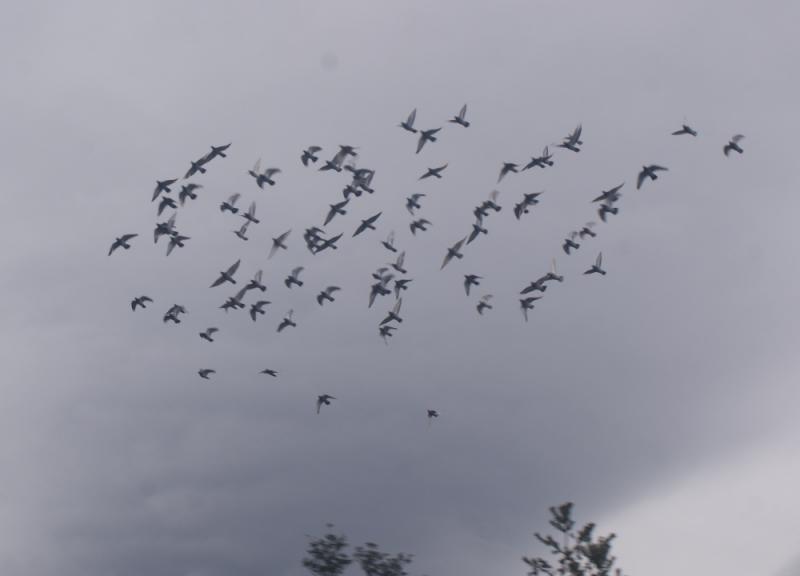 選手鳩くんたちは黙って「1時間」は飛んでいましたが「4羽」の鳩くんが、嫌気を差して下りてしまいました。飛ぶ気を失くした鳩くんは追っても無駄なのでそのままにして、他の鳩くんは「飛びたくない鳩くん」が居なくなったので益々飛び易くなって気持ち良く飛び続けていました。