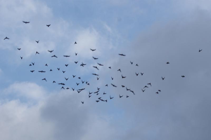 管理人がその場を離れて、冷えた体を温めてから外に行くと鳩くんたちは低空飛行になって大半の鳩くんが下りたので時間を見ると「10時50分」だったので「1時間25分」飛んで下りてくれたと思って居たら、又、何かに驚いて飛び立ちました。