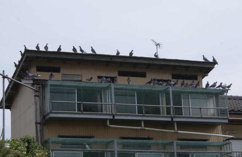 その為か、鳩くんたちは気が立っているようで暗くなる頃でも外には「40羽」位いて、電気を点けて明るくして「餌」を与えて呼び込みましたが結局「20羽」位屋根で一泊する事になりましたが、翌朝に見にいくと外には「10羽」の鳩くんがまだ外に居ました。