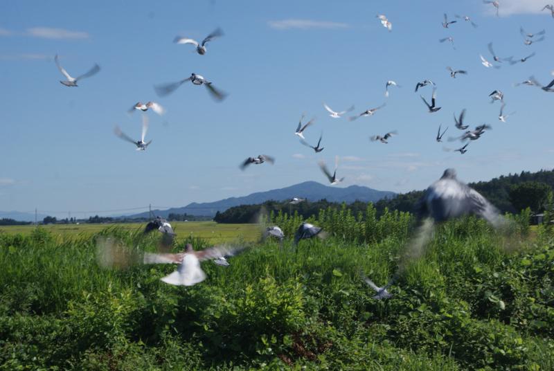 でも「バスケット」に眼をやると、まだ沢山の鳩くんが残っていたので追って出して上げました。空を眺めると大きな集団を追いかけるように下から二つの小さな集団が追いかけていたので数えると「20羽」位居たので、これらの鳩くんが遅く出た鳩くんだと思いましたが前回より大幅に少なくなっているので安心していました。