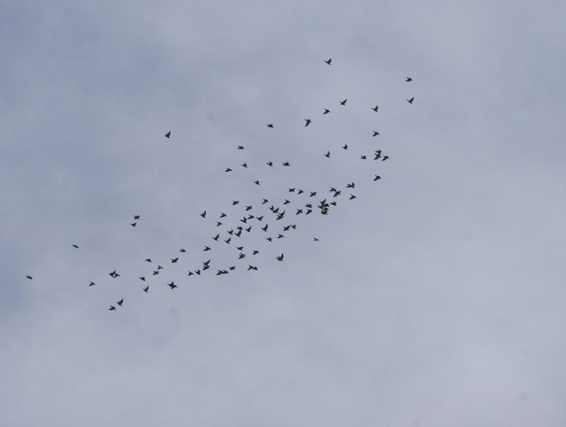 飛び出しましたが「2羽」の鳩くんが飛びたくないらしく「低空飛行」です。その他の「5羽」は集団の鳩くんたちに追いついて一緒に飛び始めたと思ったら、集団が二つに分かれて飛び始めました。やはり「餌」を戻した影響が有るのか?と心配しましたが、又一塊に成って遠征に行くようになりました。