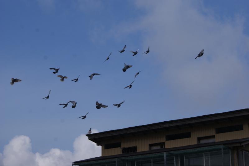 管理人は鳩くんが沢山で帰ってくると思って待って、今日は「無風」に近いので、「海」と「山」の中間コースで帰還すると思って見ているとやっと姿を現しましたが、鳩くんの数は余り居ません。