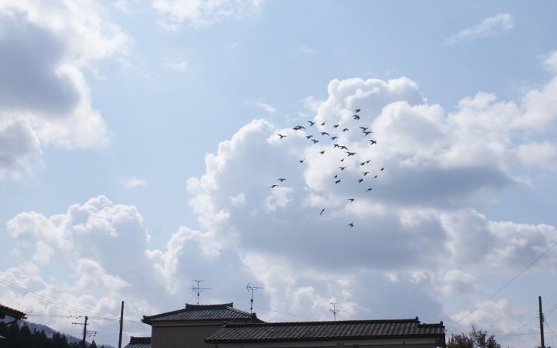 他の鳩くんを探すと、集団で飛んでいるが確認出来たので撮影をしようとシャッターチャンスを狙っていると鳩舎の傍に来たと思ってシャッターを切ったら、そのまま屋根に止まって入舎しちゃいました。