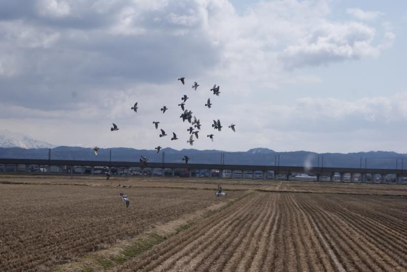 「高速道路」に乗り込んで少し走ると右前方に「鳩くん」の集団が眼に入りました。羽数的にも管理人の鳩くんでは?と思っていると地元の鳩くんの集団と混じったのが確認出来ました。