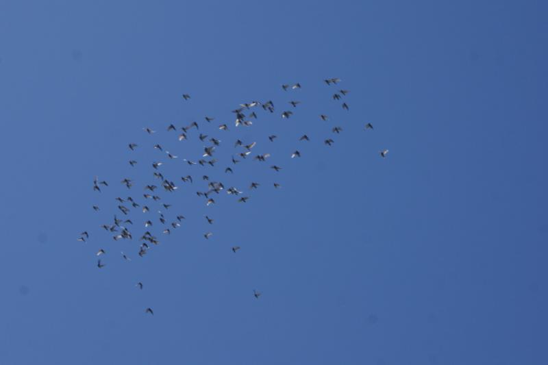 飛びたくない鳩くんは無視をして、「釣竿」を振り回しているとやっと「集団」が低空飛行になった時に合流してくれました。面白い事に合流するとスピードアップが出来て一緒に飛んでいました。今日は、昨日の攻撃でも成果が出なくて諦めたのか「ハヤブサくん」の出没がなくて良かったです。
