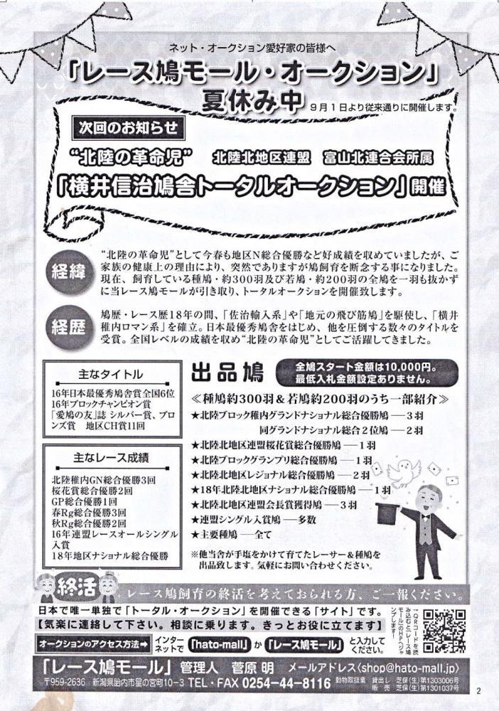 最大の「トータル・オークション」を開催できる事は、当モールにとっては非常にうれしい事ですが、反面一人の「レースマン」がお止めに成るという事は「鳩界」にとっては非常に残念な事です。