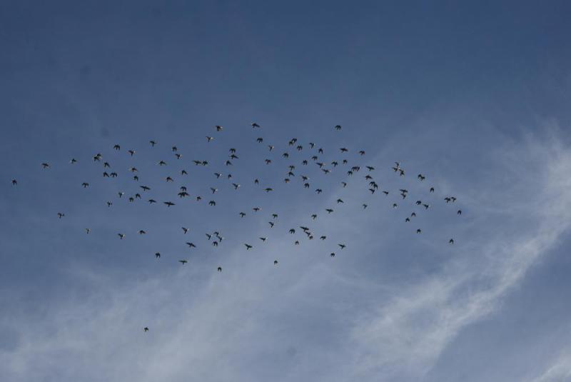 下りていって「釣竿」を振り回すと、屋根に止まっていた「鳩くん」は飛び立ってくれました。管理人は「釣竿」を振り続けて「鳩くん達」が一つの集団に纏まるまで振っていると「15分位」で纏まって飛ぶようになりましたでした。
