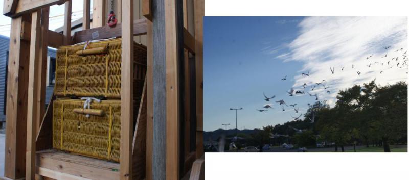 先日完成した「ホイストクレーン」も初稼働です。早速昨晩に「バスケット」6本を三階の「選手鳩舎」に上げて、残りの2本は管理室に保管して本番を待ちました。---3階には「バスケット」8本置くスペースがないのです。