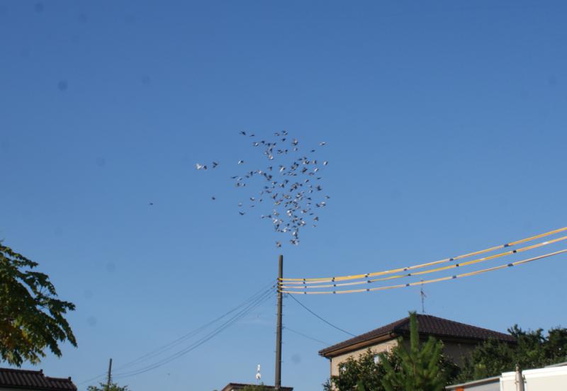 今年は「舎外数」が多いので一塊で飛んでいると後方の鳩くんは一寸気を抜入ていると「電線」等の障害物を避けきれないのでは?と考える管理人でした。
