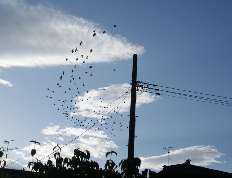 でも残りの鳩くん達は何とか飛んでくれて、戻って来た集団と一緒になって飛び始めてくれたので一安心して「カメラ」を取って来て撮影しようとすると集団が分かれて飛んでいたので一塊に成るまで待って撮影しましたが直ぐに分かれて終って中々良い「舎外風景」は撮れませんでした。--良いのを掲載します。