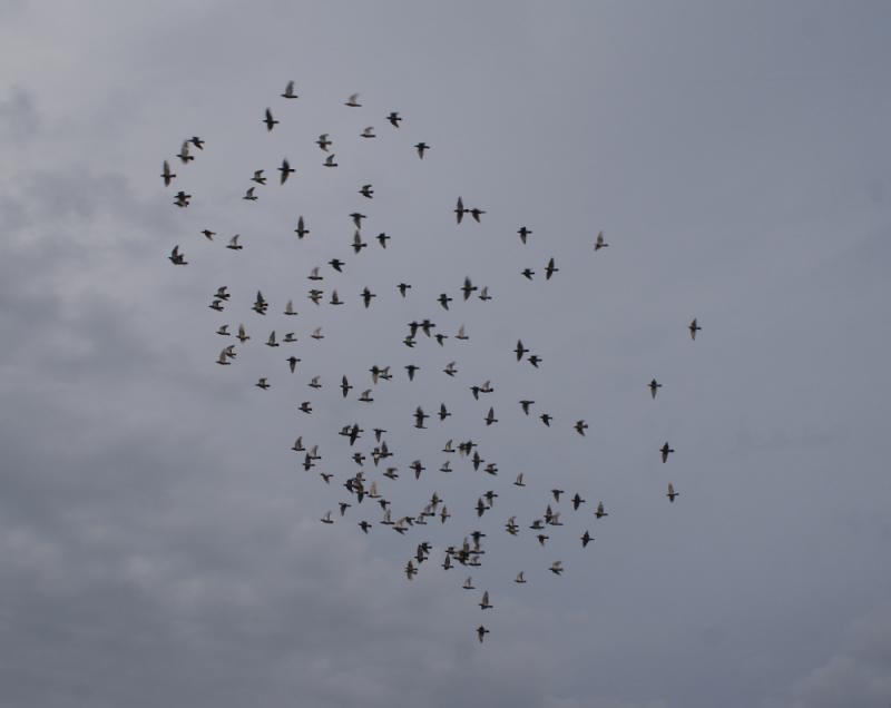 終わってもまだ鳩くん達は集団で飛んでいました。管理人はそれから他の鳩くんの給餌、そして最後に選手鳩舎の掃除をしていると「7時」のチャイムが聞こえて来たので「1時間20分」も飛んでる?と驚いていましたがじきに鳩くんが屋根に下りる音が聞こえて来ました。