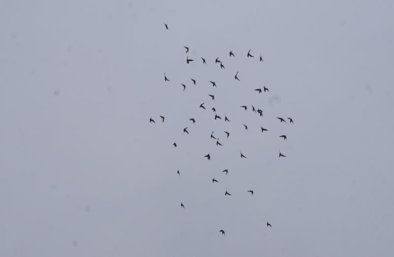 「ハヤブサくん」が追うのを諦めると、又、一塊で飛んで居て余裕さえ感じましたが?---本当は分かりません。昨日も何もしないで?見てもいないで?「1時間以上」飛んでくれました。