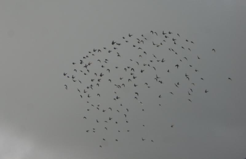 飛び続けている鳩くんが中々下りてくれません。何時もの事ですが、この「飛びたい鳩くん」には困ったものです。2時間位も飛んでくれるので「素晴らしい選手鳩くん」に成長してくれれば問題は無いのですが、この「飛びすぎる鳩くん達」は例年いずれ居なくなってしまいます。---飛びすぎる鳩くん達は自己制御が出来なくて賢くないのでは?と思う事が時にありますが?。