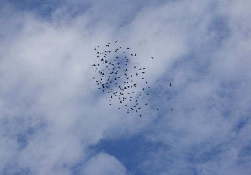 今日は「曇り空」でしたが「風」が強かったので弱くなってから「10時頃」にスタートしましたが「訓練明け」のためが何羽かが屋根に止まってしまいました。