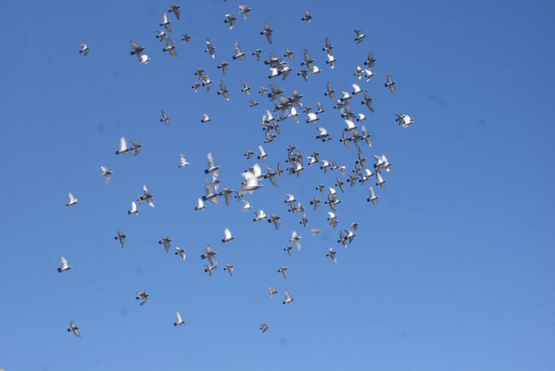 当初は、何羽が離れていましたが直ぐに一緒になりましたが恒例の「遠征」には行かずに周辺を小回り旋回をしていて鳩くん同士の距離間が無くて嫌な飛び方をしていましたが「15分」位経つと何時もの距離間で飛ぶようになってくれましたが中々「遠征」には行ってくれません。