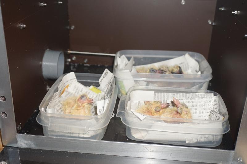 スタートは「オークション」が終了してから「孵化器」に入れたので「孵化4日目」の雛鳩くんを先頭に「5羽」の雛鳩くんが無事孵化しました。