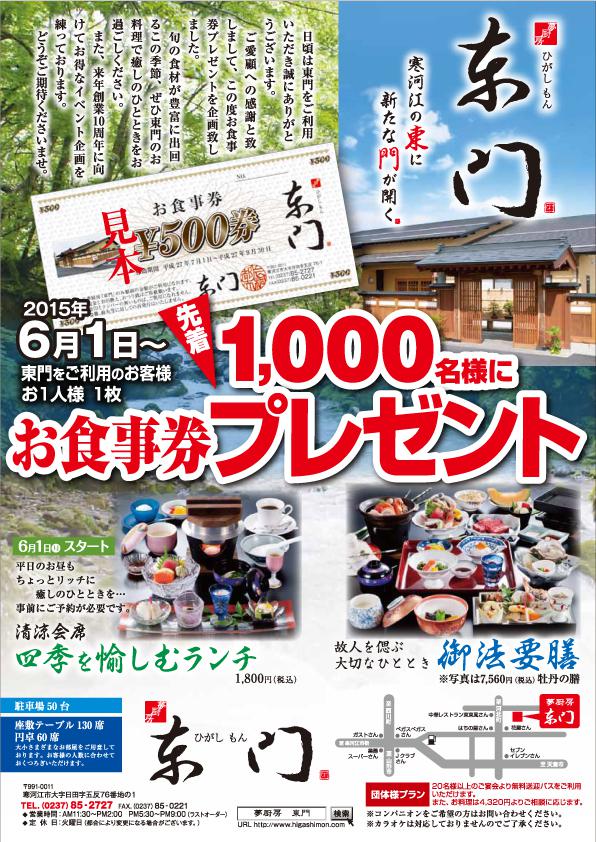 ご来店いただいた方先着1,000名様に500円のお食事券を