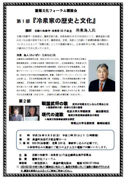 ▼王朝の歌守・冷泉家25代当主講演会〜置賜文化フォーラム共催事業のお知らせ〜