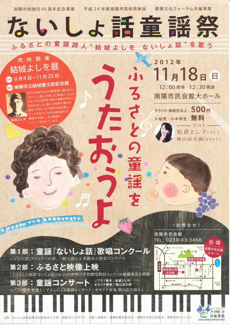 ▼童謡「ないしょ話」歌唱コンクール募集〜置賜文化フォーラム共催事業のお知らせ〜