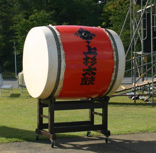 伝国の杜前の芝生広場では、上杉太鼓の雄々しい音が鳴り響き、