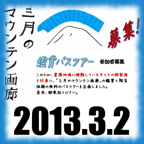 このたび、置賜地域に避難している方とその御家族を対象に、「三月のマウンテン画廊」の鑑賞と陶芸体験の無料のバスツアーを企画しました。是非、御参加ください。