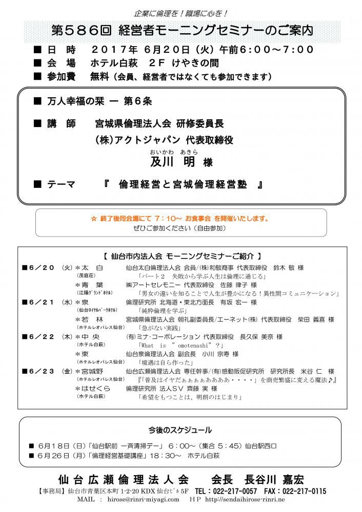 * 講 師 宮内 昭穂 様 仙台広瀬倫理法人会 相談役・宮内歯科医院 院長 * テーマ 「 “まなざし”が変われば子育てが変わる 人生が変わる 社会(会社)が変わる 」
