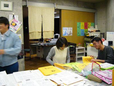 なぜか人数が増えたり、減ったりする製本作業。