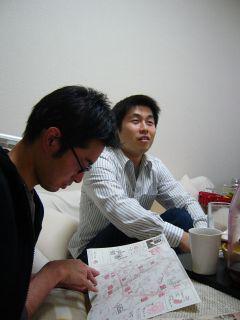 地域雑誌「谷根千」を持ってきてくれた加瀬くん。今野氏が見ているのは谷中の本屋マップ。たくさん味のある本屋・古本屋やカフェがある町。こんな町だったら住みたいな〜。