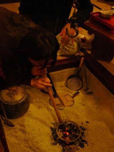 ▼ふ〜ふ〜火起こし中。
