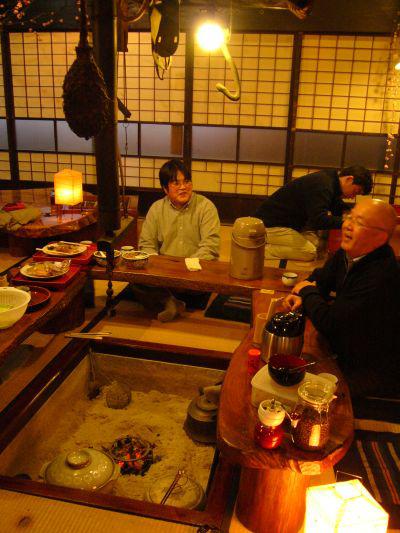 囲炉裏のあたたかい雰囲気とうまい食べ物は人を和ませて、くだらない話に花を咲かせます。