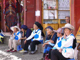 散歩につかれると、ナシ族のおばあちゃんの横でぼーっと一息。
