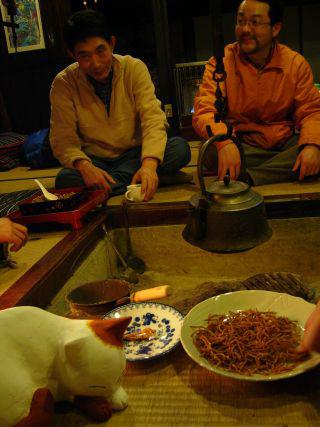 囲炉裏端で話に花が咲く。 (松)