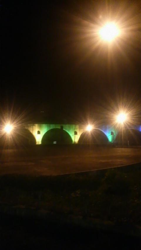 メガネ橋ライトアップしてる。