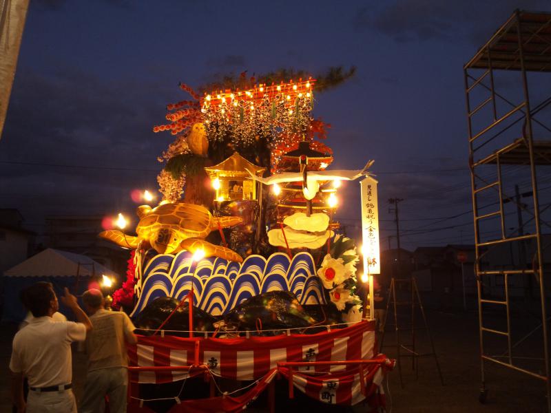 今年の風流は復興祈願七福神再来です。見返しは鶴亀祝う金色堂。昨日アセチレンガス取り付け試験しました。いつもの年より本数が多いのでかなり明るくなりました。さらにかなりの数の蚊に刺されました。