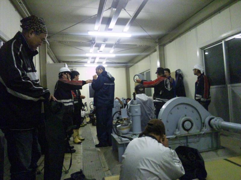 台風の影響で北上川の水位が上昇しており警戒のため水門に待機しております。消防団は水防団も兼ねており今日は徹夜の警戒になります。あまりひどくならないよう祈るばかりです。