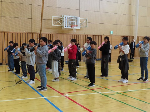 グループ別に練習し、その後体育館で合わせました。