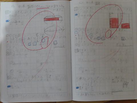 同分母の分数の計算を3年生では習いますが、異分母になった場合について、考えてきた学習でした。自分なりに計算を速くするポイントも書かれています。