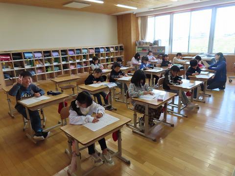 教室掲示の準備をしているクラス、椅子の高さを合わせているクラス、教科書の確認をしているクラス、プリントで練習問題をしているクラス、フリースペースの使い方についてレクチャーを受けているクラス様々でした。
