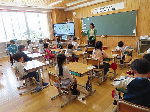 明日の授業参観に向けて、1年生は校歌を覚えて元気に歌っていました。歌詞もしっかり覚えての歌です。素晴らしいです。姿勢も立派でした。