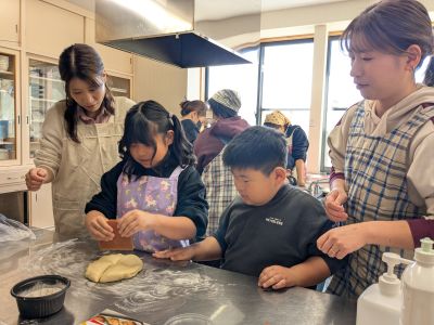 11月23日(日)小白川公民館において、GO!GO!キッチンの「親子deパンづくりワークショップ」が開催され、小白川地区の「パン屋さん・難波美恵さん」のご指導をいただきながら、5組の親子が参加しパン作りを楽しみました。