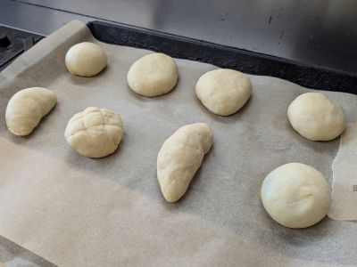 参加者は、「成形」と「具材選び」に挑戦、「チョコ・あんこ・チーズ・マヨコーン・カレー」などの具材をパンに包み込み、オリジナルのパンを作り、最後は難波さんに「追加発酵と焼きあげ」をしていただき完成させ、難波さんが準備してくれた「塩豚スープ」を味わいながら試食会を行いました。難波さんご指導ありがとうございました。