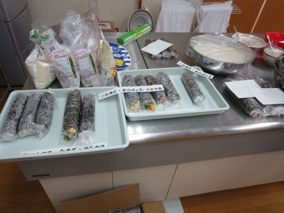 玉子焼きやかんぴょう、ツナマヨなどいろんな具材を組み合わせて事前に作っておきました。