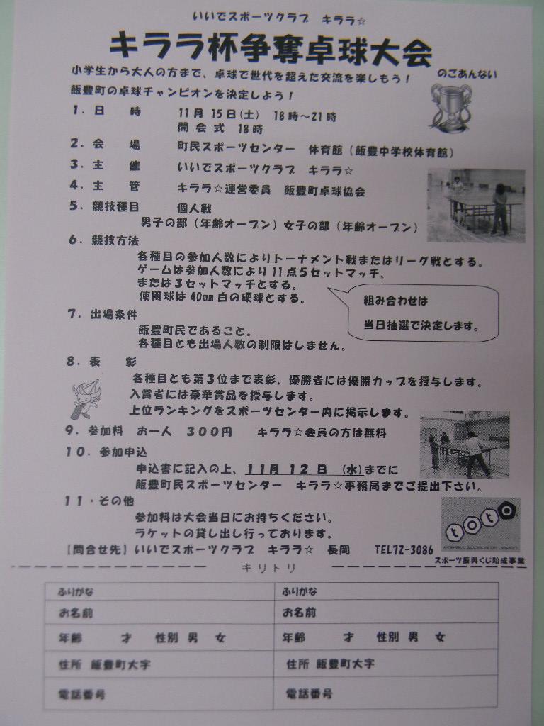 第3回 キララ☆杯争奪卓球大会を開催します。