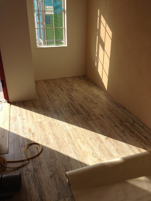 今回使ったのはアンティークなウッド調のタイルでしたが、