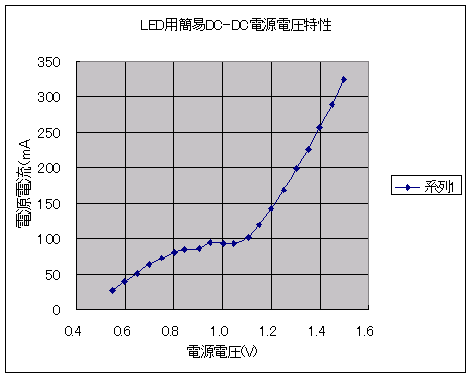 ▼白色LED点灯用簡易DC-DC>電源電圧特性