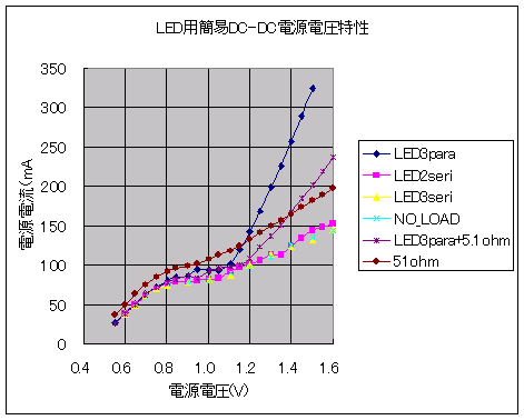 ▼白色LED点灯用簡易DC-DC>負荷を変えてみた