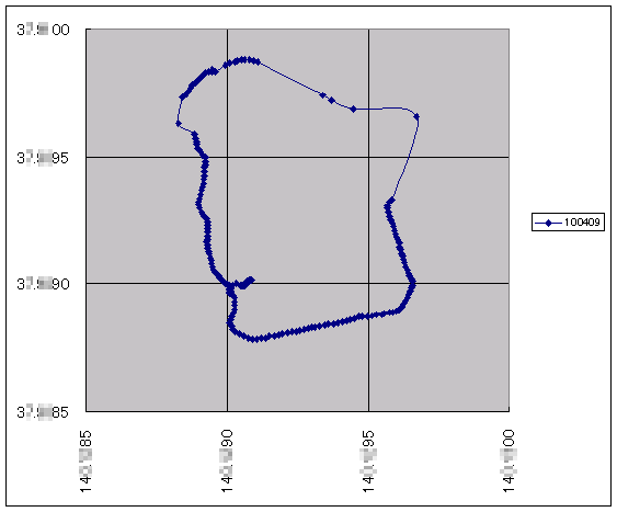 前回と同じセッティングで、PC側でログを取りながら徒歩でぐるっとその辺を一周。(今回は逆回りにしましたが)