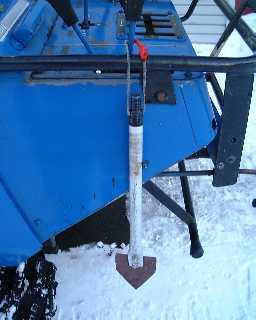 先端は片側が塗装され、裏側は適度にさびているほうが具合が良いようです。さびているほうの抵抗を利用し雪を取り出すようにしているからです。