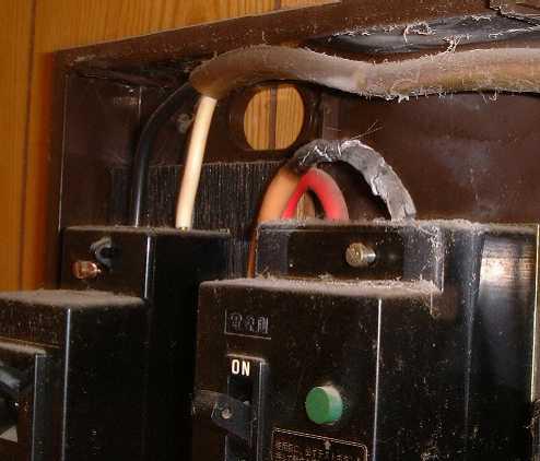 かみさんが異臭に気付き、探してみたら配電板のブレーカーの配線が焦げてました。(おおヤバ!)